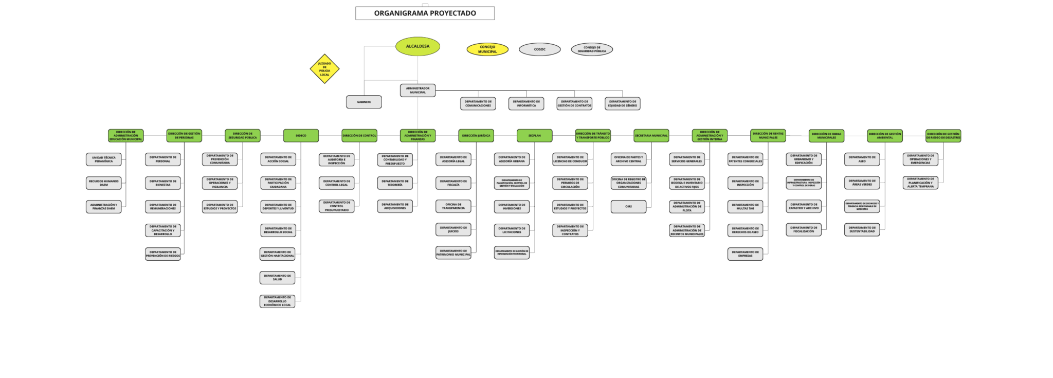 El organigrama refleja las relaciones jerárquicas y áreas funcionales del municipio para una gestión eficiente, transparente y cercana.